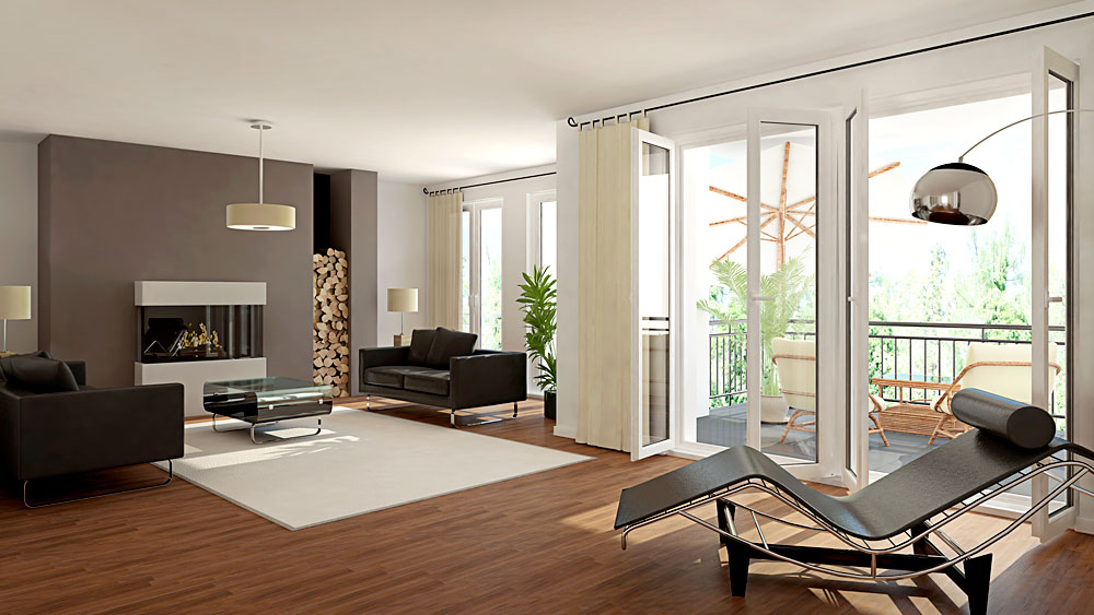 Zeit zur Entspannung. Rückzug ins Private, Erlebnisse reflektieren, neue Energie sammeln. Ganz nach Ihrem persönlichen Lebensstil. Echtholzparkett im Lieblingston. Bodentiefe Fenster mit stilvollen Rahmen öffnen den Blick zur Terrasse. Ein Designerkamin an der richtigen Stelle. Und Sonnenlicht von allen Seiten. Schon baumelt die Seele.